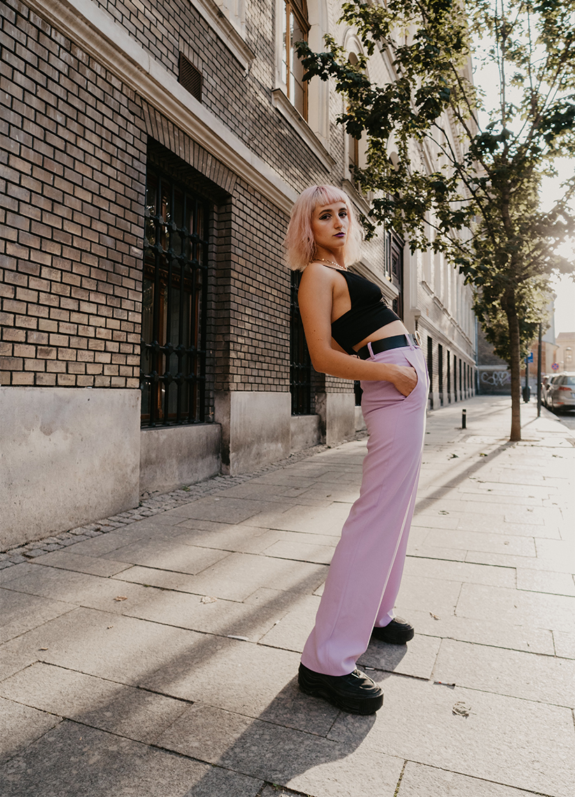 パンツはオーバーサイズとなっており、緩急あるシルエットが表現できます。